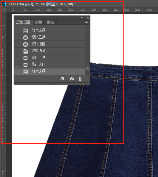 这样看起来是不是好一点了呢。接下来我们进行轮廓处理,首先使用套索工具对产品进行选区,接着对产品轮廓进行修补处理。