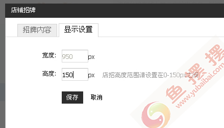 正确的做法:鱼摆摆进过实际测试,淘宝2012新旺铺的导航条高度是35px。如果你需要导航条,应该先在“显示选项”里设置店招高度为150px,然后编辑店招图片,其高度小于等于150-35即115px,然后按下图上传店招图片。