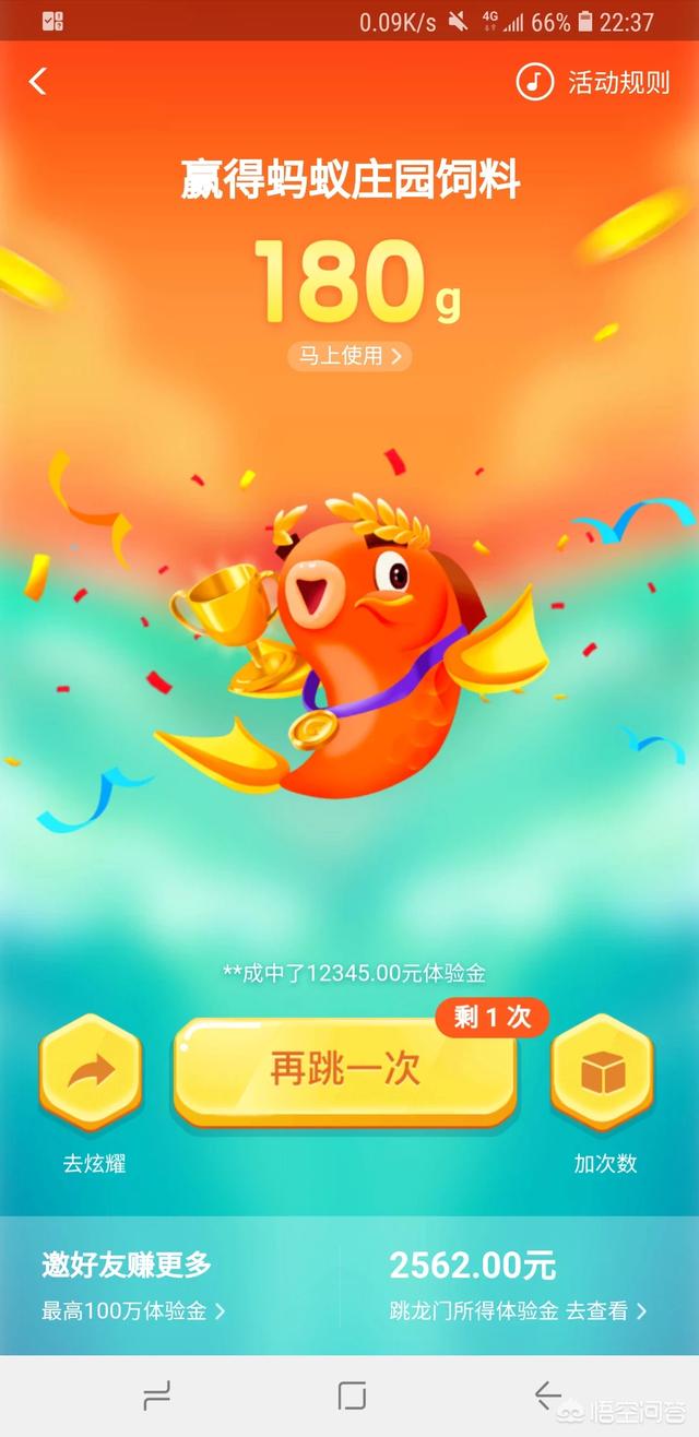 本人支付宝余额宝体验金共计拿到21228元,天天玩一下年年有余跳龙门这个游戏,就可以拿到体验金了,小伙伴们快快行动吧。一般就是几块钱吧,也可以的。
