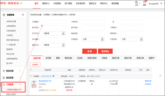 2、操作路径: 订单管理 > 订单查询与跟踪(SOP) > 订单列表