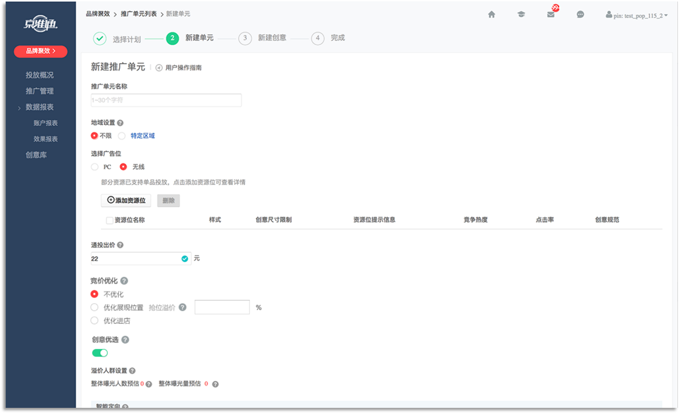 操作入口:选择首焦资源位→出现“竞价优化”→ “优化进店”( 和“不优化”、“优化展现位置”互斥 )。
