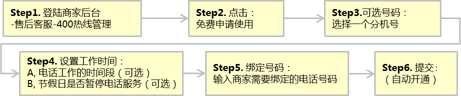 5、电话运作方式:买家通过拨打4006101360或400 611 5718后,按提示语音输入 ① 商家分机号(即系统分配的6位号码)或 ② 订单编号,通过京东电话系统平台转接至商家绑定的电话号码上,商家即可承接相应的电话咨询服务等。