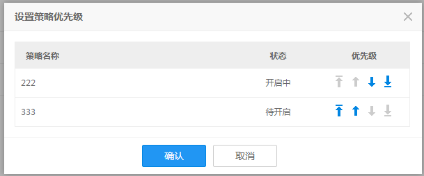 4、点击右上方调整优先级按钮,可调整所有策略的优先级;当同一消费者同时满足多个策略时,将选取优先级最高的策略页面进行展示;弹窗中列表顶部优先级最高;