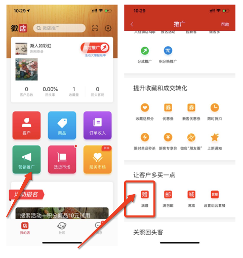 微店如何设置“满赠”