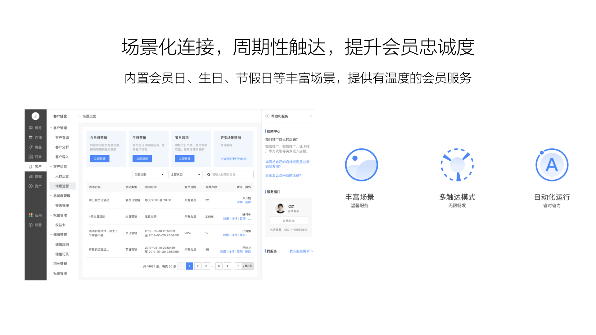经过紧锣密鼓的开发,场景营销将于5月14日公测上线,场景营销涵盖会员日营销、生日营销和节日营销,旨在帮助商家建立更多与用户互动的场景,持续激活客户,提升复购转化。公测将于6月17日结束,公测期间,商家可以根据自己的场景新建适合的人群运营计划,公测结束后,如果需要继续使用,可以进行商业化订购,如未订购,正在进行的活动将会终止,请大家合理安排自己的营销活动。