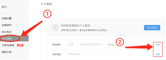 请您登陆微店网页版d.weidian.com,点击【个人资料】—点击"店主身份"后的【修改】按钮。