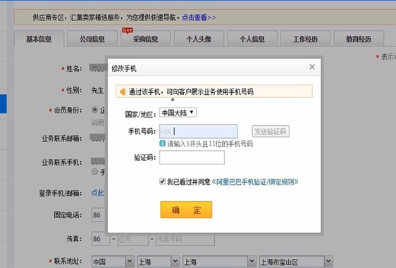 3. 进入跳转到的下一个页面【账号信息】中,通过“业务联系手机”这一栏以添加或者修改主账号的专属联系号码。