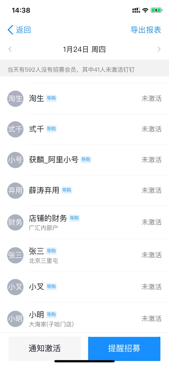 今日招募会员:从今天00:00起至当前,该导购的实时招募会员数(本时段内,先入会又退会的,不计入)