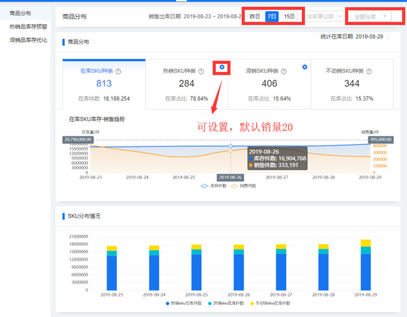 根据销量划分商品等级,并对热销不动销商品库存进行预警;通过【商品】页签,确认不同销量等级的商品在库情况,库存预警,减少大促期间断货的可能性,保障前端销售顺利