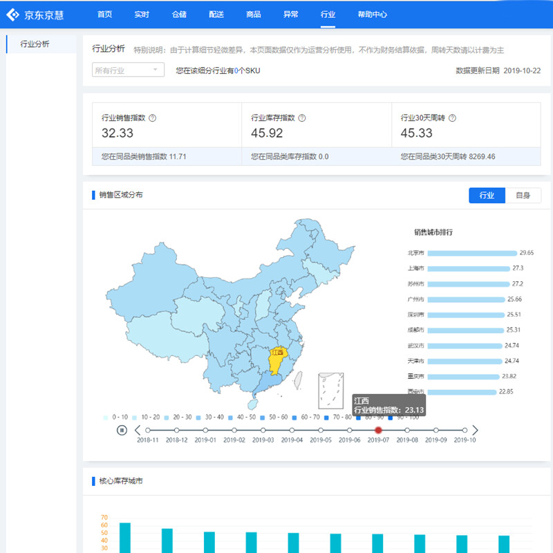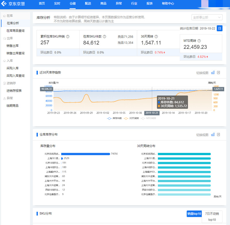 “京慧”是面向商家开放平台中小件入仓商家的标准供应链数据服务平台(暂不包含FBP、FCS商家)京慧数据平台结合京东沉淀多年的供应链管理经验,围绕订单、库存、配送、商品等场景进行洞察分析,能够为商家执行层、管理层、决策层提供仓配业务的基础数据展示、业务大盘的异常预警、以及多维度全链条的诊断分析