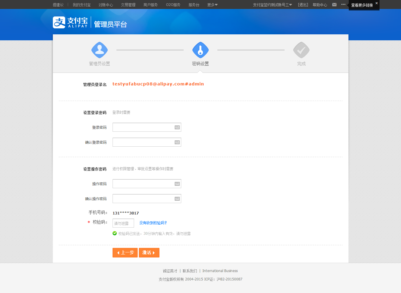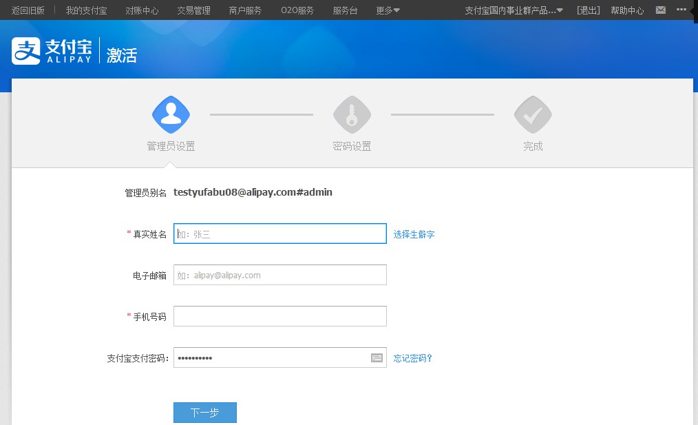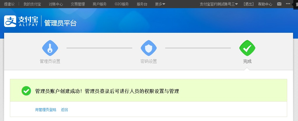 1. 管理员登录名默认为:支付宝主账户登录名#admin
