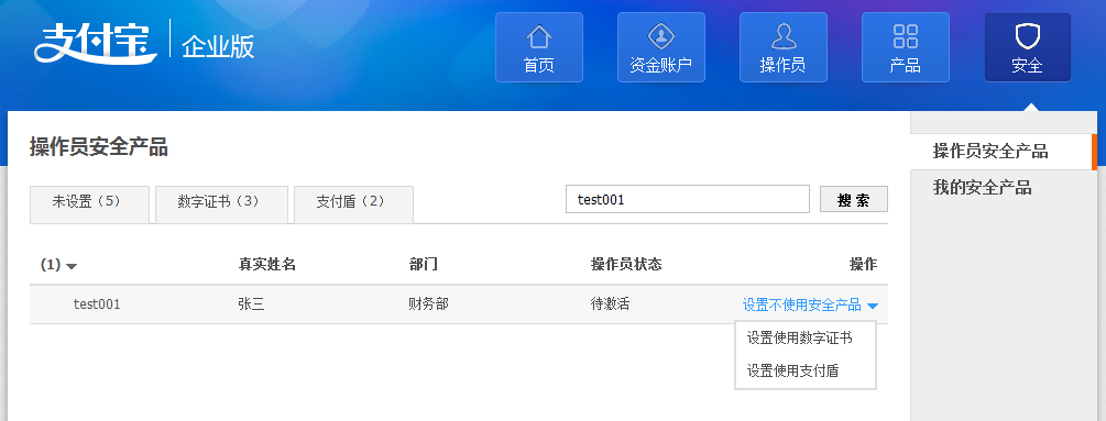 支付宝商家如何为操作员设置安全产品