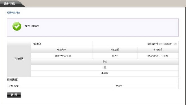 审批记录可以查看已经提交的审批进度及结果;如果操作员具有审批权限,则可以查看自己审批的记录。