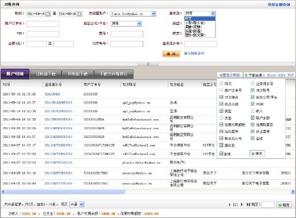 具备对账权限的操作员,可以通过“操作员”来筛选指定操作员或所有操作员的交易记录。