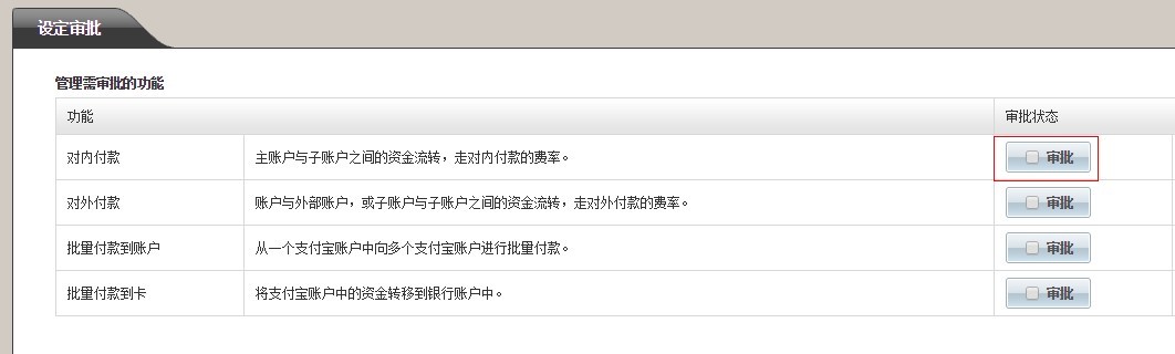 设定审批:通过设定审批,可以给某个功能设定一定的审批流程,设定完成后,操作员在使用该功能时需等待相关操作员进行审批后才能生效
