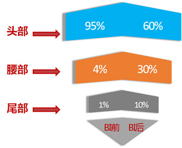 千人千面大大改变了流量分配的形势,在未实现千人千面前,商家流量分布大致是头部占95%,腰部占4%,尾部占1%。在实现千人千面后,流量分层大致是头部占60%,腰部占30%,尾部10%。也就是说,千人千面后京东流量分配更为合理,对中小卖家、新商家更为公平,机会也更多。并且千人千面后,中小卖家在搜索上流量更具有优势。