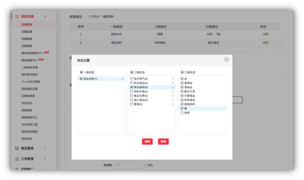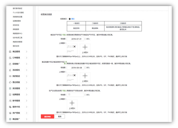 2 点击“修改”后可直接更新类目资质信息,点击“增加”即可按照当前主营类目选择要增加对应的二级类目、三级类目,并根据当前已经营的类目和新增的类目上传对应的经营资质信息。