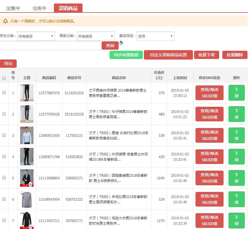 筛选完滞销商品之后,当然是全部批量下架了,但是先等等不要急,我们还需要一个很重要的步骤要操作。