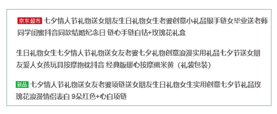 商品优化建议:其实对于七夕这个时间段来说,多半都是买礼品,这种情况店铺可以退出一些礼盒的赠送、商品组合销售(XX情人节礼包),这样对于那些想要送礼的男生来说变得很方便,选礼品就花费了他们大量时间,再选购礼盒简直是太费脑子了,直接提供礼盒销量真的可以提高很多很多。