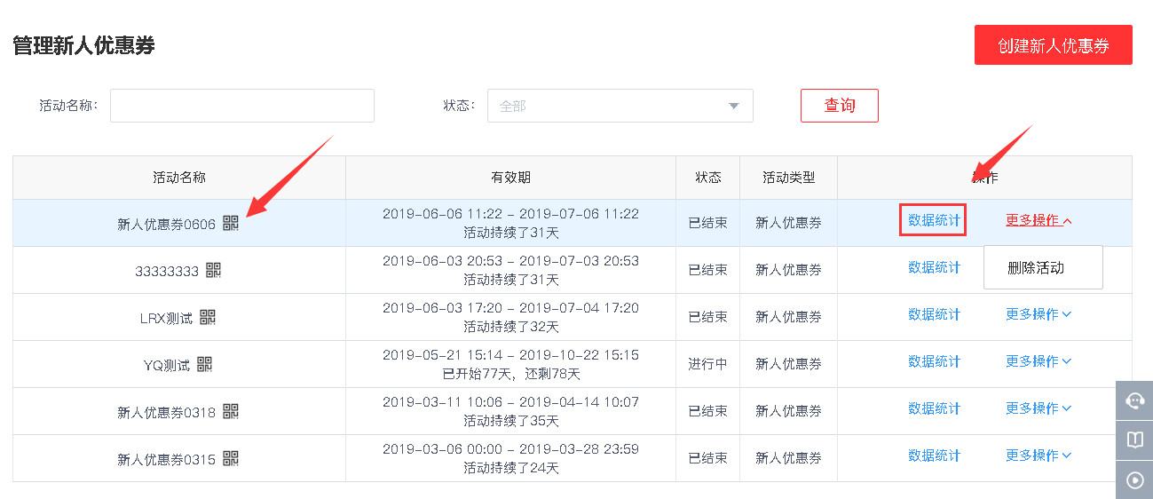 活动创建后定期查看数统计来检测优惠券领取效果。