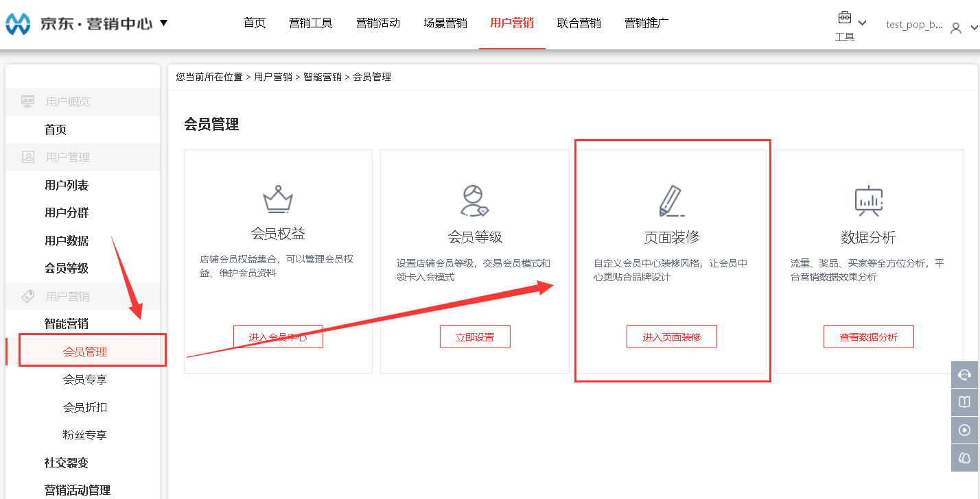 B.进入营销中心(http://win.shop.jd.com)登录商家账号后选择“用户营销”
