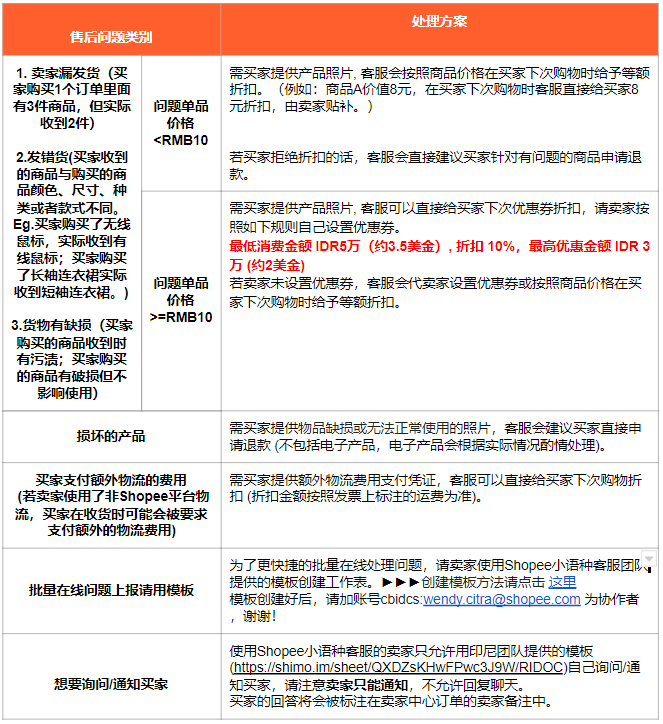 shopee商家——关于印尼小语种客服处理售后问题流程通知