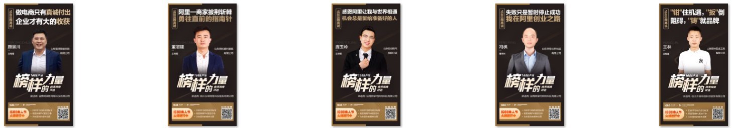 初赛期:报名作品审核通过,阿里官方为其量身定制"榜样的力量"宣传海报,同时将直接入驻"1688创业者俱乐部",优先享受阿里头条整合的1688各类活动和培训资源,并通过阿里头条-榜样故事频道进行大力传播。