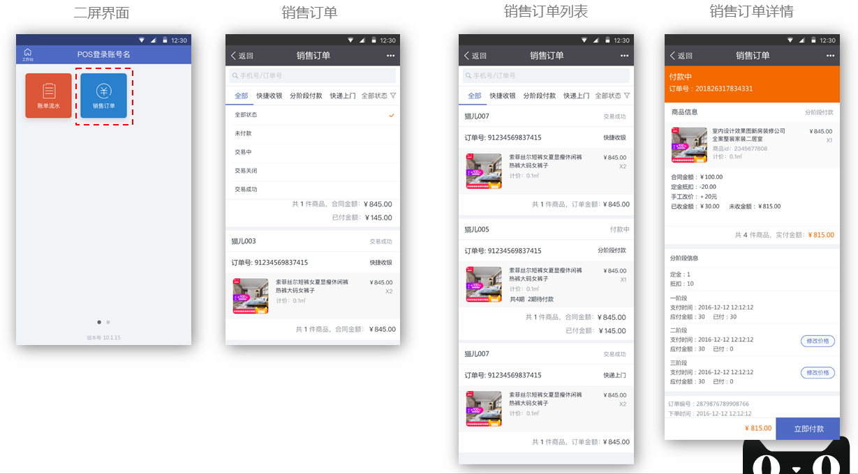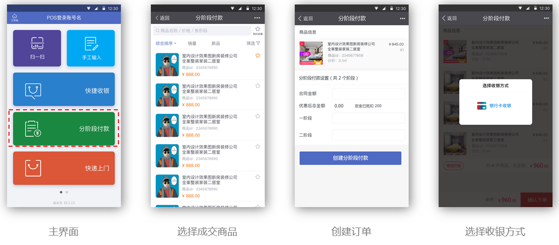 【分阶段付款】:提供现场分阶段交易场景能力