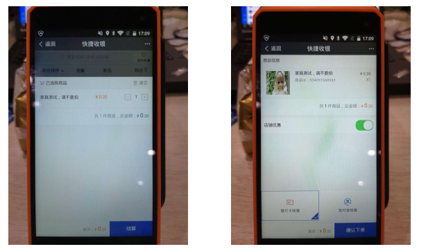 【快捷收银】:即"现场拿货",相比于老版功能,新版可支持选择多件商品一次性下单购买