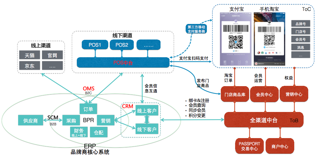 b. 扫码识别身份需要系统对接,由POS将扫到的串码提供给CRM,CRM与平台发生交互确认会员身份。详细的对接介绍,可查看本文档下面的“会员码身份识别接口”的介绍。因为该功能有一定的技术对接成本,是非必做功能。