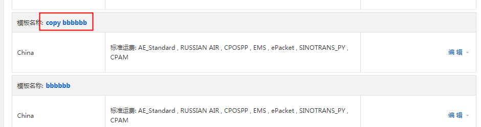 2)最后您刷新下该页面,即可看到复制出来的运费模板:名称带有“copy”字样的运费模板即为您复制后重新生成的运费模板,如下图