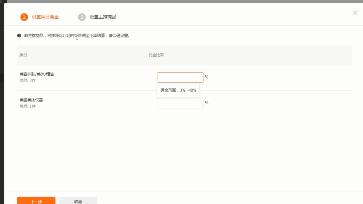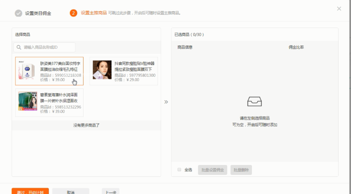 自选计划:类目佣金直接设置3%或者5%左右即可,不用设太高,类目佣金设置好了就可以好自己设置单品佣金比例,佣金比例设置到5%-10%即可,还可以在后台看到参与的推广者,可以自己选择