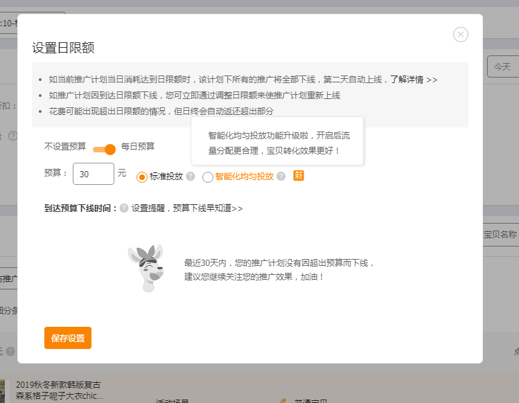 1、设置日限额:可以选择不设置预算,当你选择不开预算的时候,淘宝会最大限度的帮你推送你的产品。