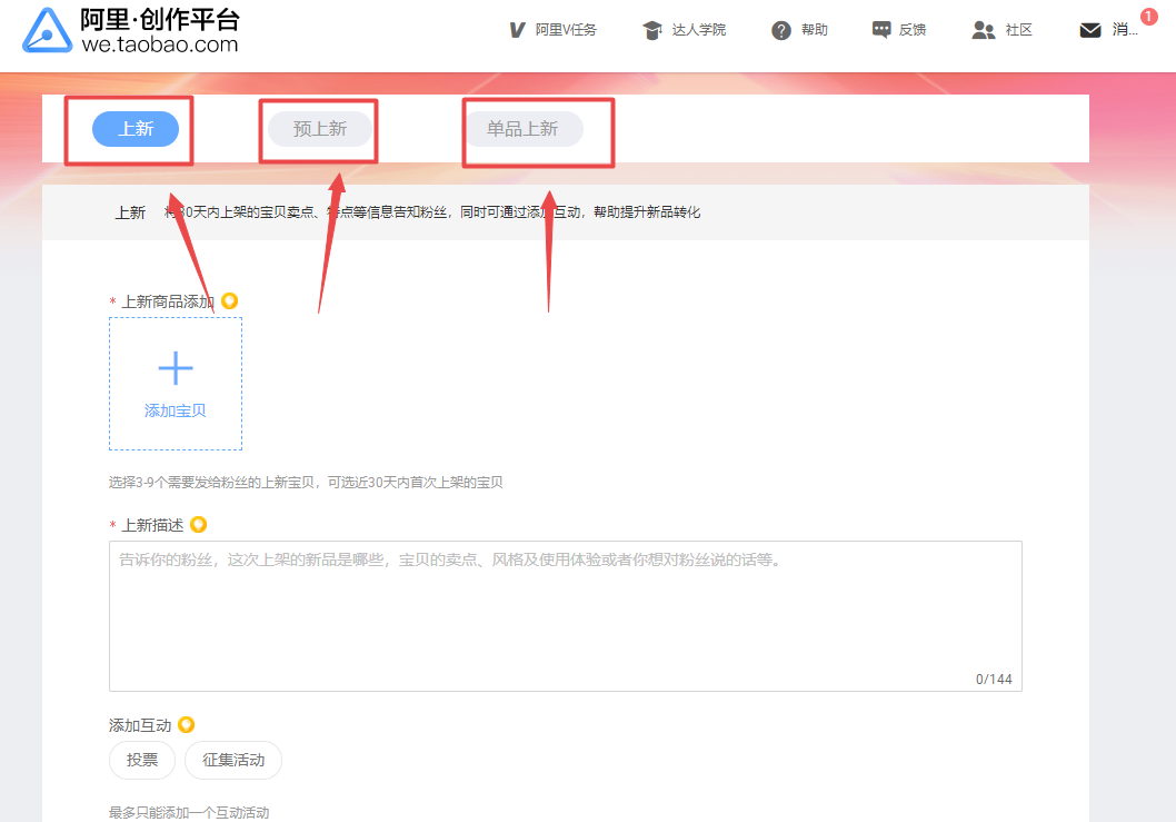 在这里面我们就可以发布微调预上新,新品商品,商品种草都可以,吸引买家下单