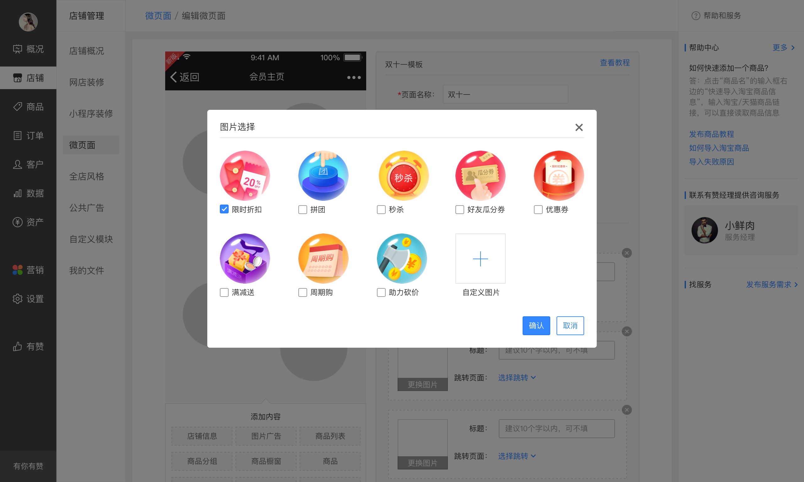 电脑端微商城后台 - 店铺 - 微页面 - 新建微页面 - 场景导航 - 双11模板