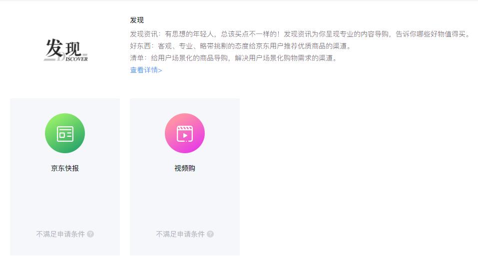 成功申请达人账号后,身份认证将在1-2个工作日进行审核,身份认证审核通过后,方可进行发布权限申请。申请开通快报渠道:点击【渠道申请】>【发现】>【展开】>【视频购】,点击【申请】: