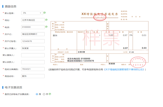 填写对应信息后,右侧发票样式皆可预览,税收分类编码可参考公告文档
