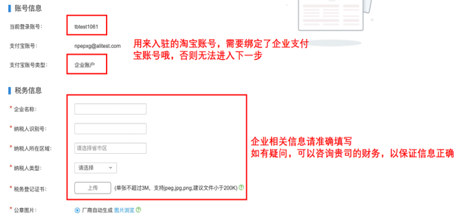 完善企业及税务信息