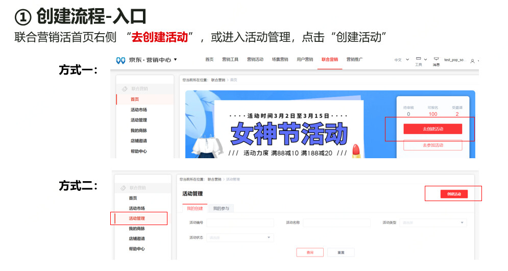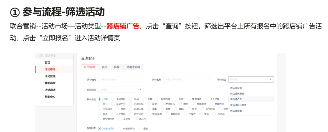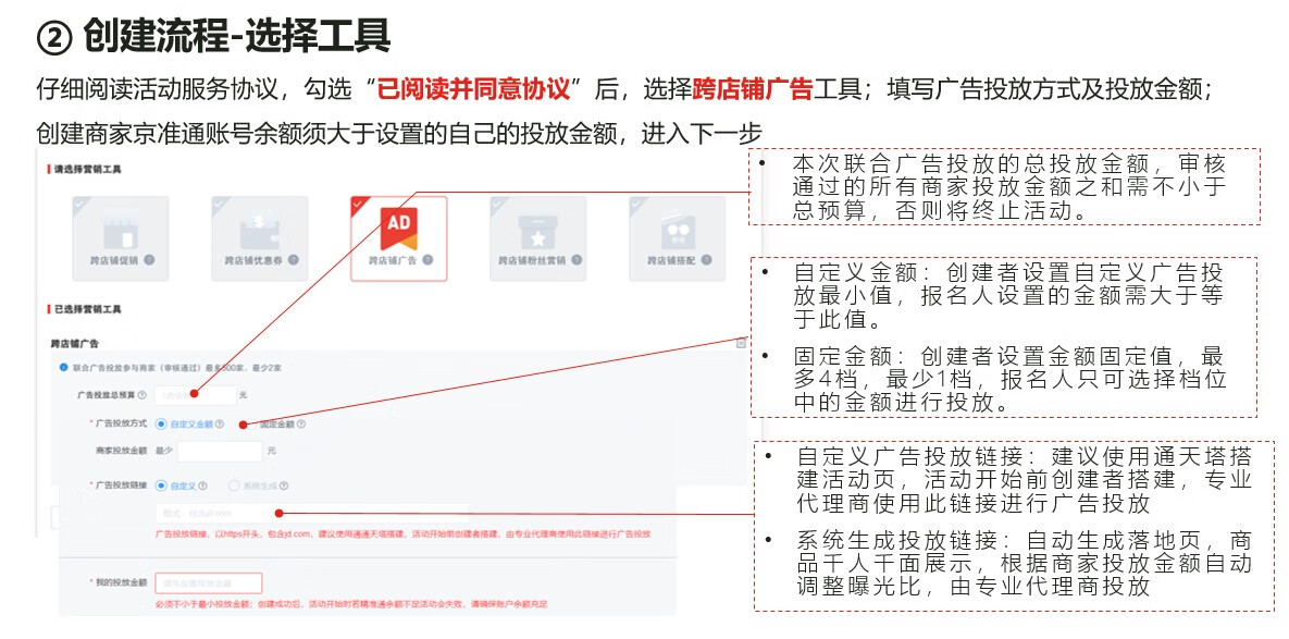 1.使用范围:①联合营销-创建/参与跨店铺广告活动;②京准通-联合活动