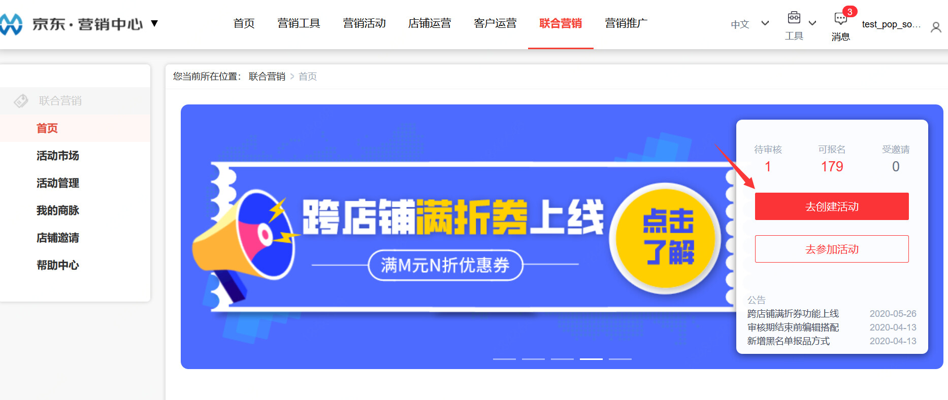 1.SHOP商家后台—营销中心—联合营销—去创建活动