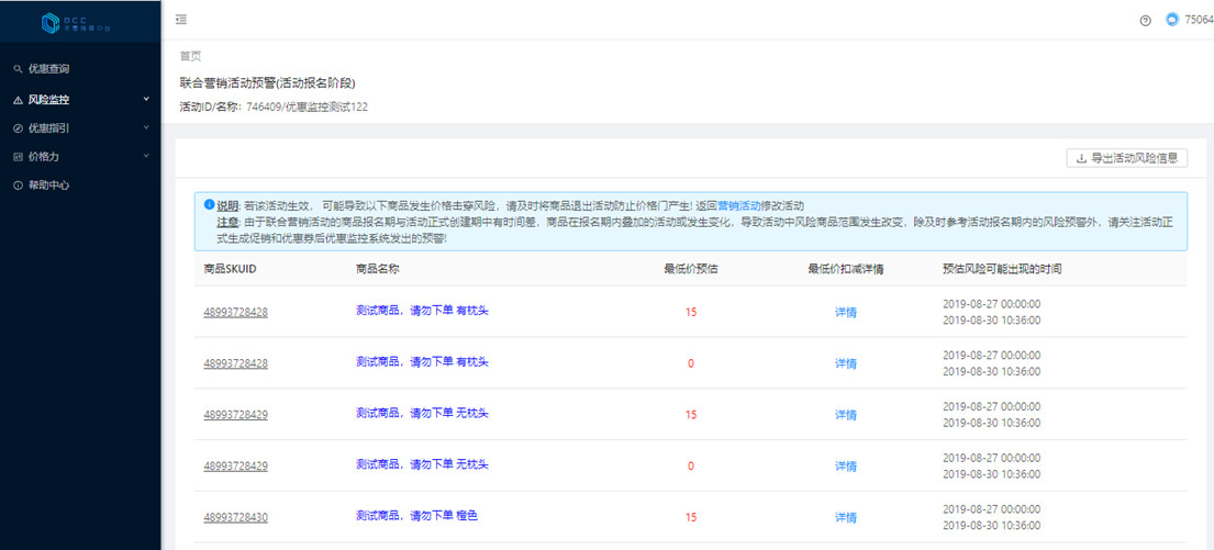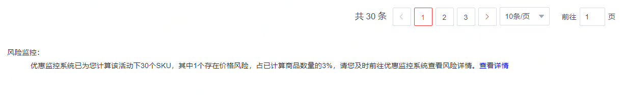 POP商家活动创建阶段,点击“优惠监控”查看风险提示信息
