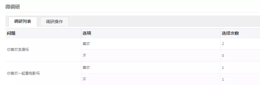 4活动统计:查看此次调研过程中粉丝提交的结果。