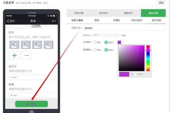 提交按钮也可以自行进行设置,如下图所示