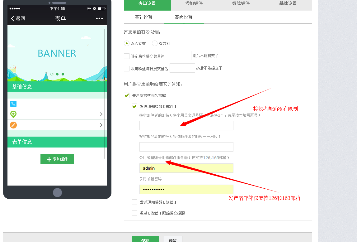 表单设置中包括基础设置和高级设置