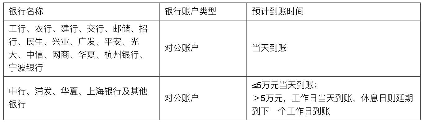 规则:支持转账到公司对公银行账户和私人银行账户,转账到银行账户费率: