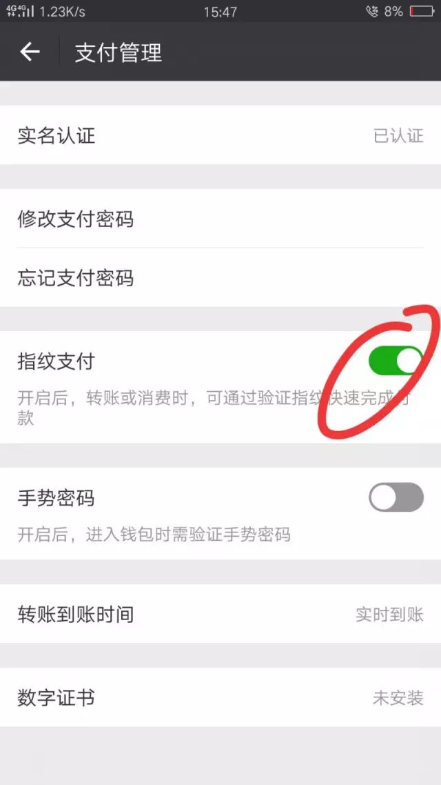 点击支付设置-指纹支付