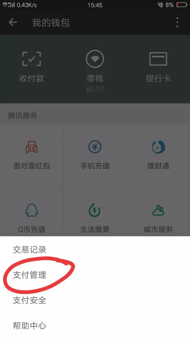 打开微信-我-点击三点-支付管理